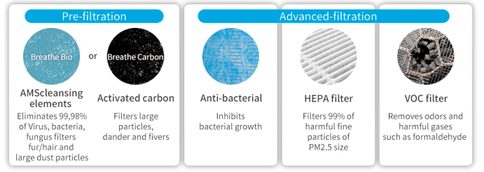 - Pre-filter (Breathe Carbon) + Main-filter (Breathe Odors)
