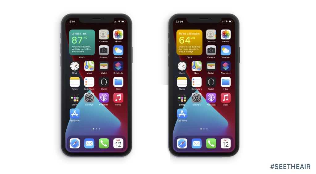 So the philosophy is the same, depending on the time of the day and maybe the location, the AQ widget adapts the information to fit the user’s current needs. As you can see in the mockup above, the widget during the morning (left iPhone) checks for the outdoor conditions and AQI and advise the user to ventilate the room when the ambient air is good. During the night, the widget or app checks again the conditions inside your home where the user and the AQ monitor is placed and advise you accordingly. In this case, it has detected high CO2 concentrations, and it knows that soon the user will go to bed. In case the user doesn’t have an automatic HVAC system, which could communicate via HomeKit or IFTTT, then he/she has to open a window.