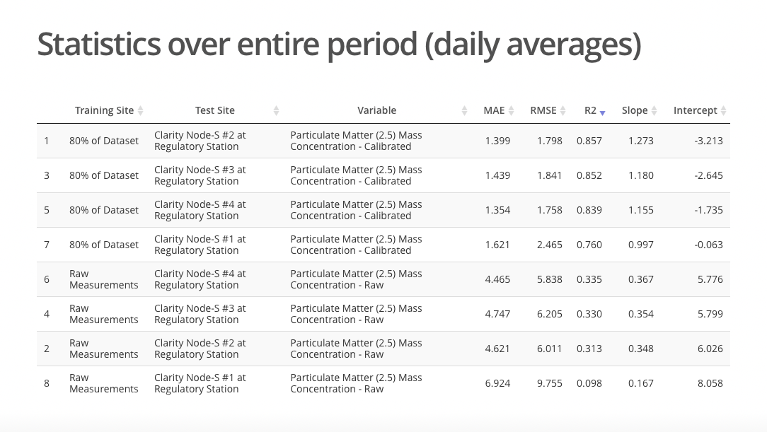 Clarity’s process for PM2.5 and NO2 calibration is similar.