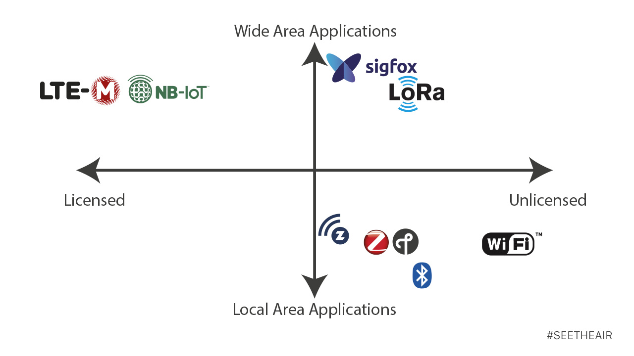 For B2B air quality monitors, LoRa and SigFox can offer great signal penetration at low-cost and excellent battery life, a gateway is needed though. However, if you are looking for security and future-proof networking technology then NB-IoT and LTE-M are the technologies that are going to serve you most with a higher cost due to ongoing costs. Gateways for both NB-IoT and LTE-M are optional.