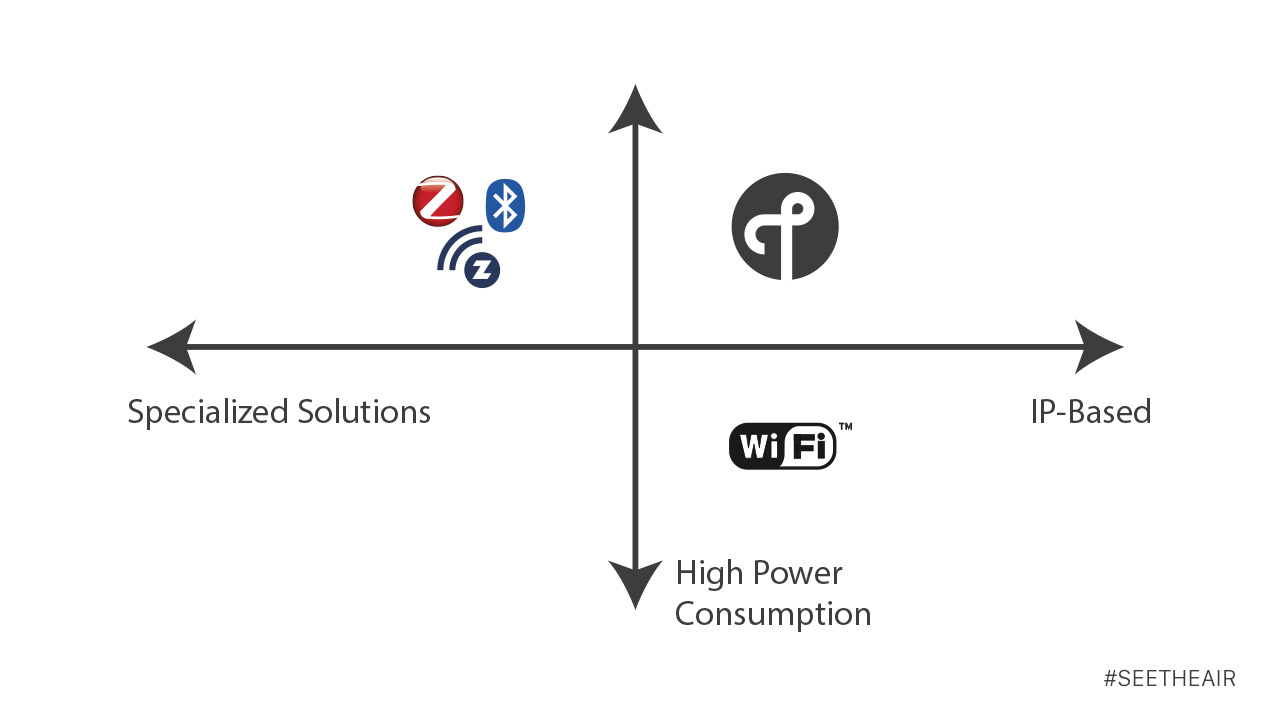IoT AQMs do not need a high-speed data throughput because the information they transfer is very little and in the range of a few kilobytes. So protocols like the IEEE 802.11ac and IEEE 802.11ax don’t make a lot of sense because they demand energy and they don’t offer good wall penetration in order to cover an entry house/apartment.