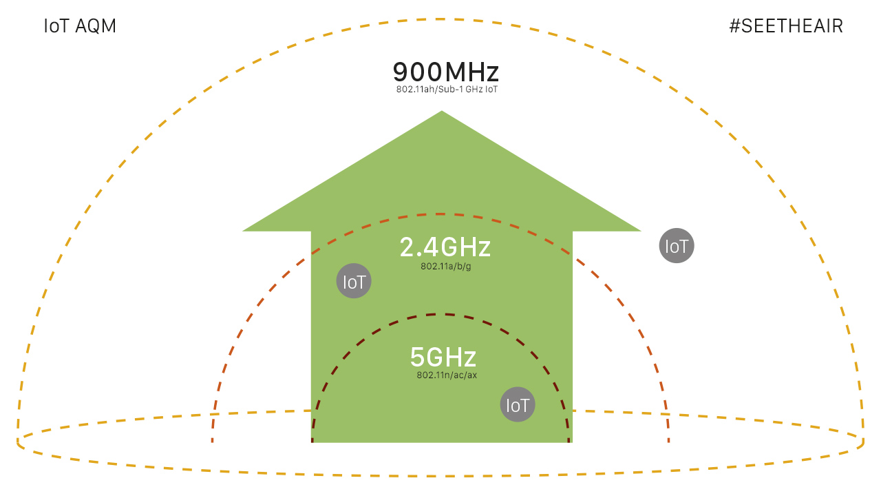 Now the Sub-1 GHz IoT 802.11ah protocol makes much more sense as it can cover a broader area in and out of a house in case the user has AQMs indoors and outdoors. Bandwidth-wise it offers speeds up to 8.67 Mbits/s.