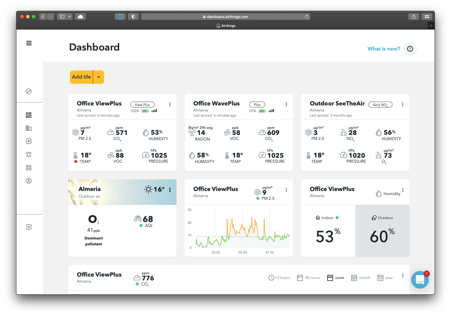 Airthings has one of the best Dashboards available in the market. Full of features as I have mentioned in the past. They keep adding new stuff, so make sure you read the updates.