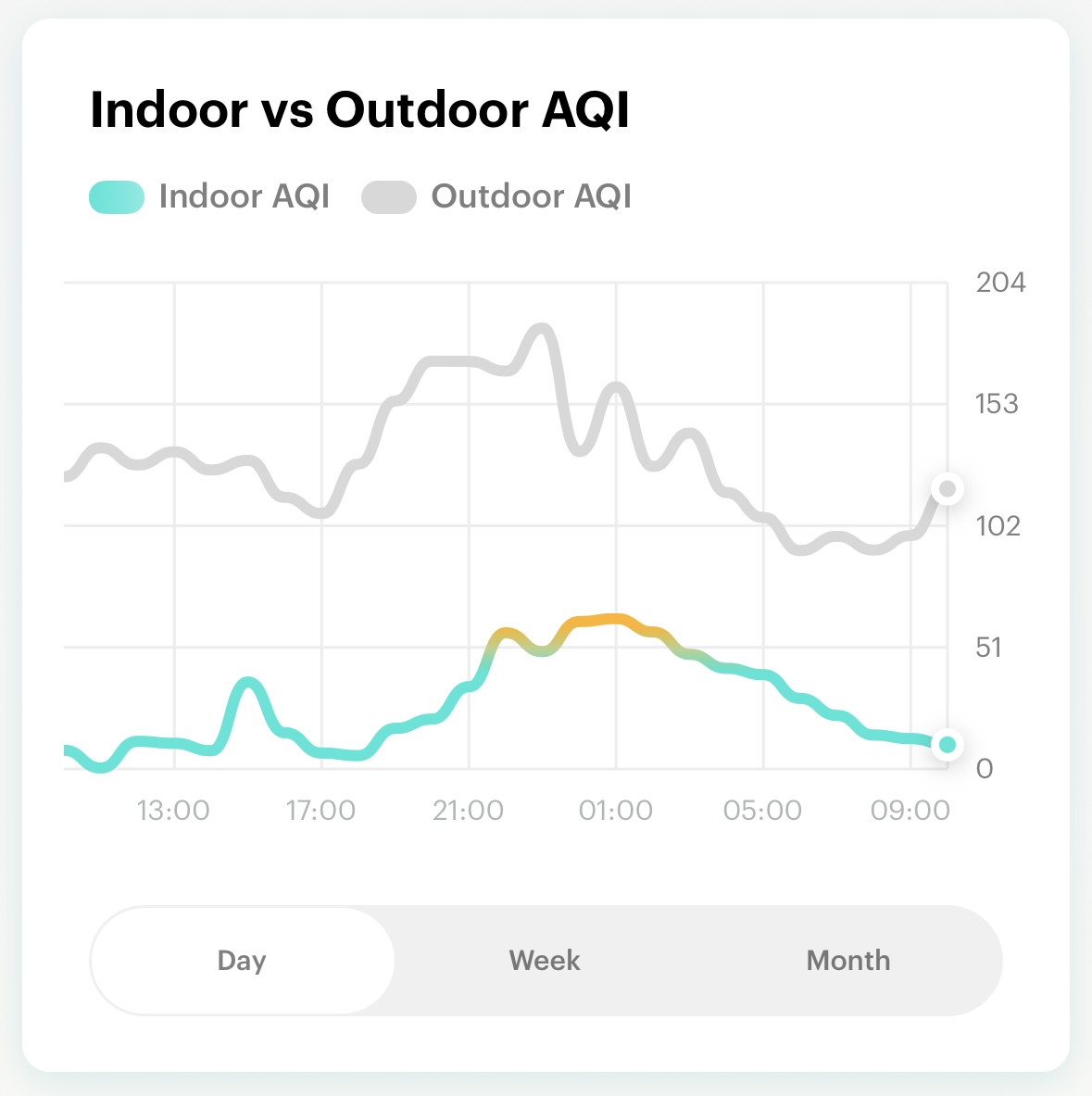 I got sick. I was coughing a lot, especially during nighttime when everyone lit the wood stoves. Outdoor PM2.5 concentrations were beyond unhealthy and they infiltrated indoors. The air purifier couldn’t keep up in low speed/low noise mode. I couldn’t sleep with the purifier at 100% speed. This is a typical day and the ratio of indoor and outdoor AQI. Much better indoors but I had a hard time managing the air quality. I cannot image people with less knowledge of how they handle such situations, especially with rental apartments where there are few modifications you can make.