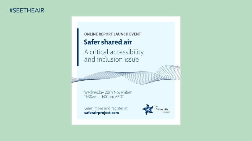The Safer Air Project is excited to invite you to the online launch of our groundbreaking report, Safer Shared Air: A Critical Accessibility and Inclusion Issue. Join us to explore the importance of clean indoor air for public health and accessibility.