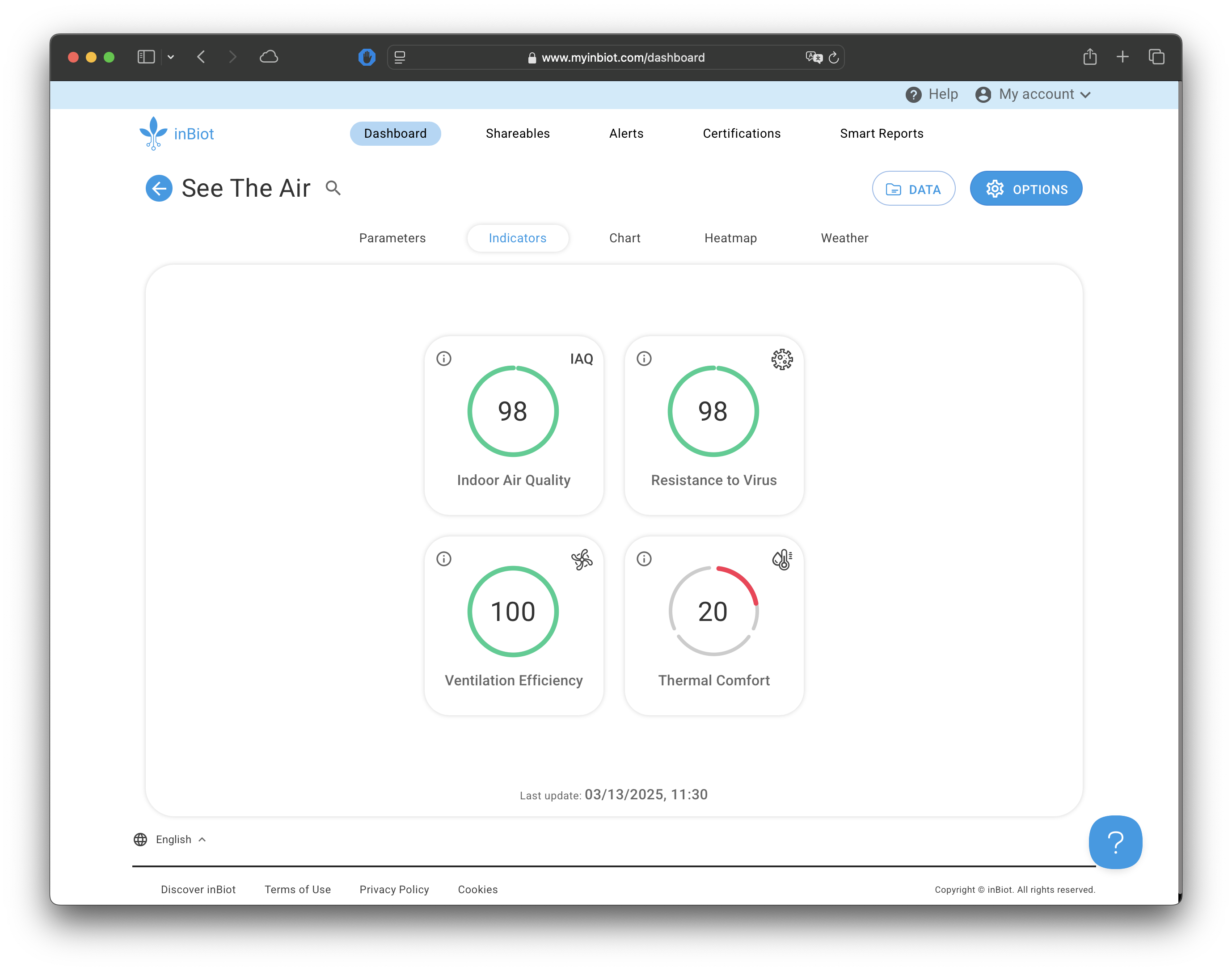 Personally, I’m particularly impressed by inBiot’s web and mobile dashboard. It’s not just functional; it’s genuinely insightful. The standout feature is undoubtedly the automated Certification Reports for WELL, RESET, and LEED, which significantly streamline the certification process for building managers. Beyond compliance, the dashboard’s smart reporting tools empower users to make informed decisions about their building’s IEQ. The dashboard’s comprehensive management tools, covering device management, user access, alerts, customization, data handling, and even weather integration, demonstrate a user-centric approach.